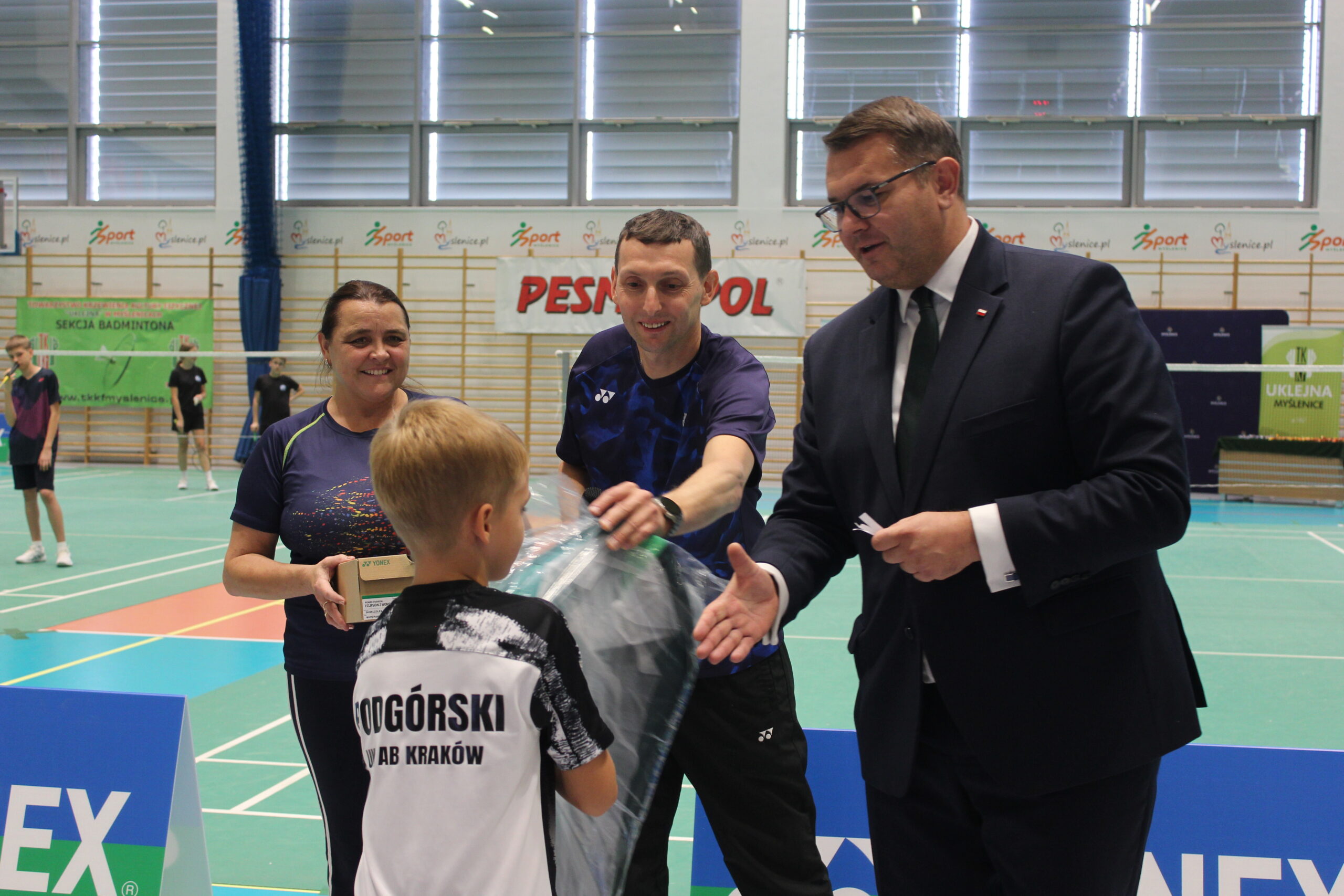 W wydarzeniu uczestniczył również Burmistrz Miasta i Gminy Myślenice Jarosław Szlachetka, który miał przyjemność wylosować wśród zawodników nagrody ufundowane przez Urząd Miasta oraz firmę Yonex.