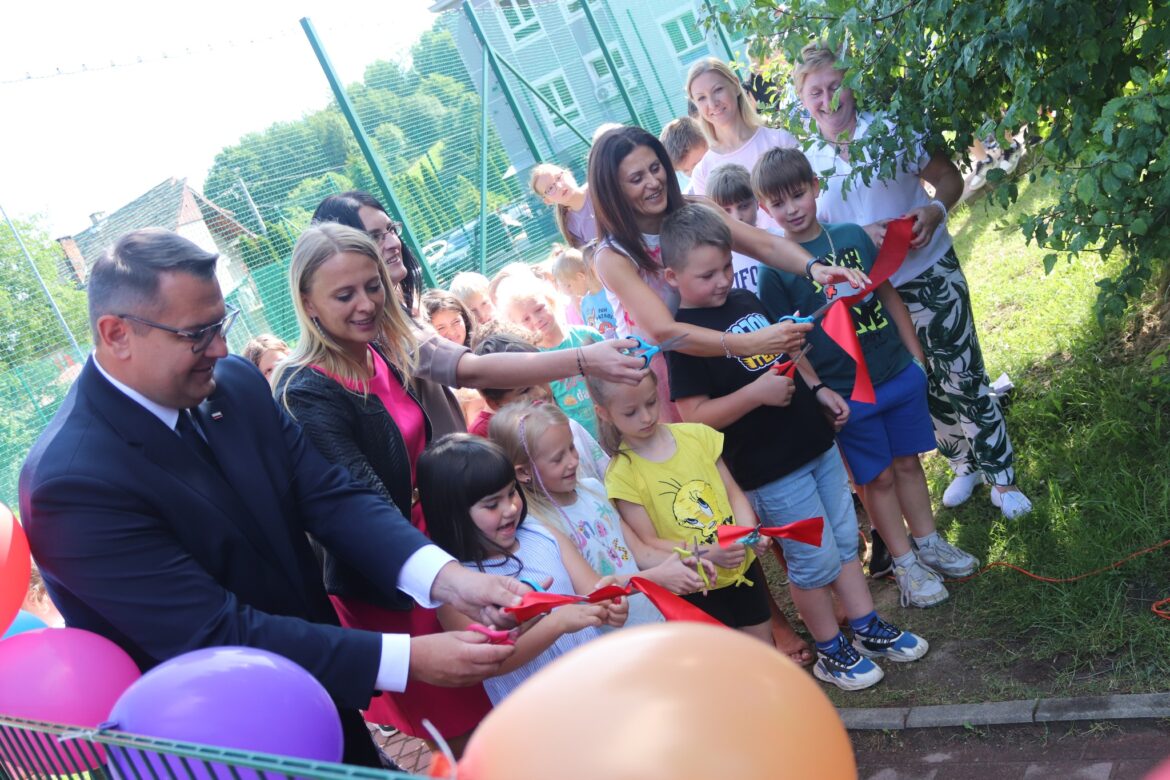 Plac zabaw przy Szkoły Podstawowej w Porębie zyskał nowe, odmienione oblicze. W ramach zrealizowanej przez gminę Myślenice inwestycji zyskał nową, bezpieczną nawierzchnię z poliuretanu, dzięki której zabawa będzie nie tylko bardziej komfortowa, ale też bardziej bezpieczna. Choć to obiekt szkolny będzie można z niego korzystać także w czasie wakacji, bo jest ogólnodostępny. W otwarciu odnowionego placu, które odbyło się we wtorek 24 czerwca, oprócz dzieci, wzięli udział m.in. burmistrz Jarosław Szlachetka i radna Rady Miejskiej Agnieszka Motyka.