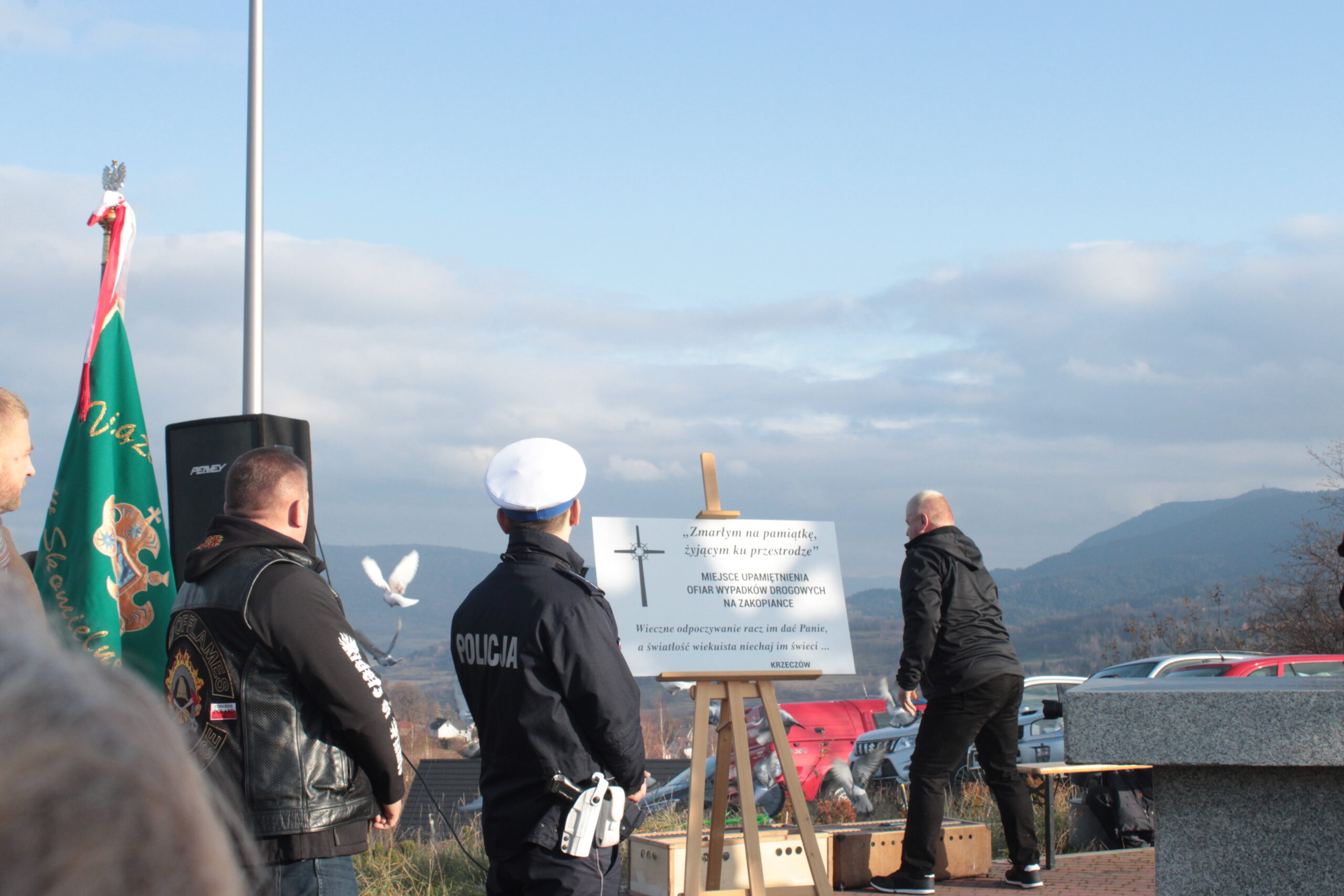 Co roku zapraszają oni przedstawicieli policji, straży pożarnej, zespołów ratownictwa medycznego, zarządy drogi krajowej, mieszkańców, a nade wszystko tych, którzy w wypadkach stracili swoich bliskich. Wszyscy oni odpowiedzieli na zaproszenie i w niedzielę licznie zgromadzili się pod Krzyżem, a tam odprawiono mszę w intencji ofiar, ale wcześniej wyczytano ich nazwiska, a dla oddania im hołdu zagrano melodię „Cisza” i wypuszczono w niebo białe gołębie.