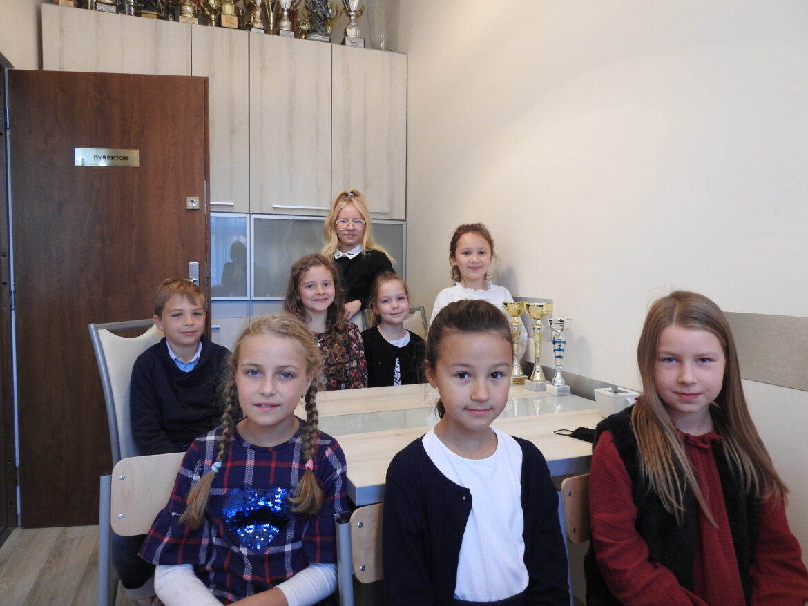 Na zdjęciu uczniowie klas trzecich SP nr 2 w Myślenicach, którzy przygotowali audycję radiową wraz z samorządem uczniowskim.