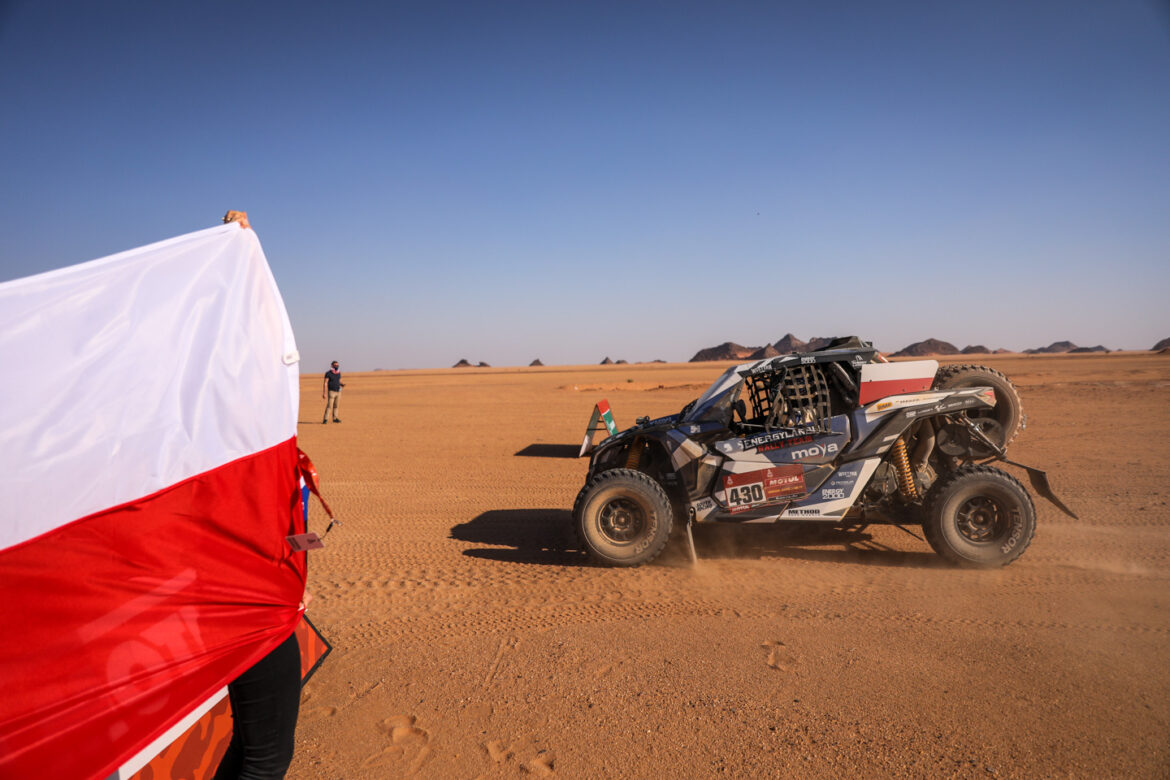 Jesteśmy na mecie 6. etapu, niesamowite uczucie dotrzeć do półmetka rajdu, nieuszkodzonym samochodem z dobrym rezultatem. Bardzo się cieszymy. Dzisiejszy odcinek to w 100% wydmy i piach. Było kilka trudnych momentów – na tankowaniu zapalił się nasz Can-am, myślałem, że to koniec. Na szczęście udało się ugasić pożar zanim wyrządził jakiekolwiek szkody.