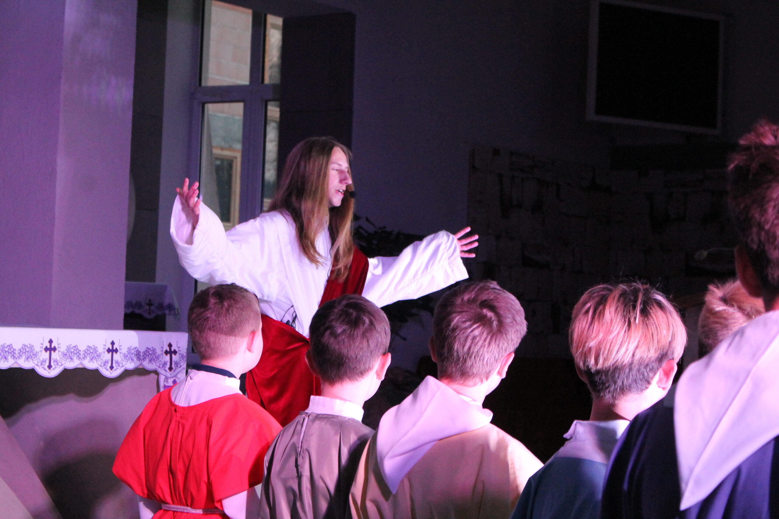 Nabożeństwo rozpoczęło się o godzinie 17:00 mszą świętą w kościele pw. św. Brata Alberta. Jeszcze przed wyjściem na trasę wierni mogli obejrzeć specjalnie przygotowany spektakl przedstawiający sceny biblijne poprzedzające mękę Chrystusa. Przedstawienie było bardzo realistyczne – dopracowane stroje, scenografia oraz pełna emocji gra aktorów sprawiły, że zgromadzeni mogli poczuć atmosferę wydarzeń sprzed dwóch tysięcy lat i głębiej przeżyć ich znaczenie.