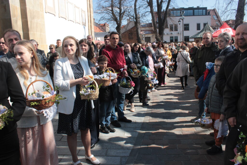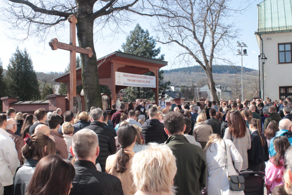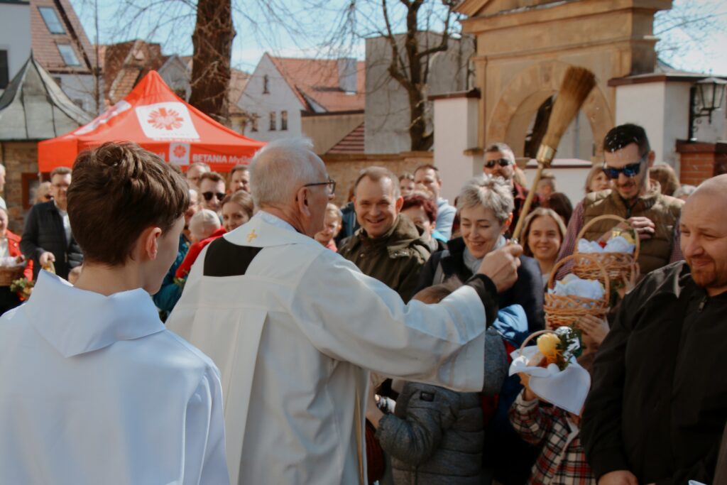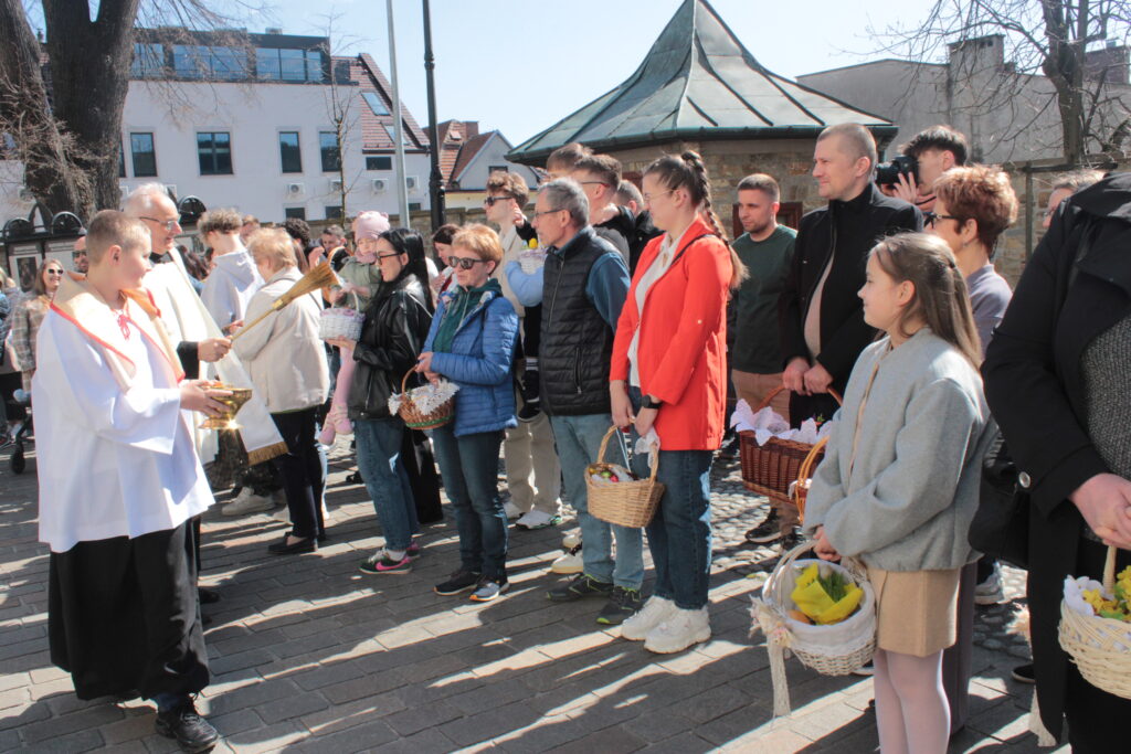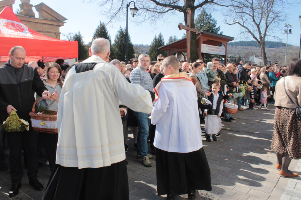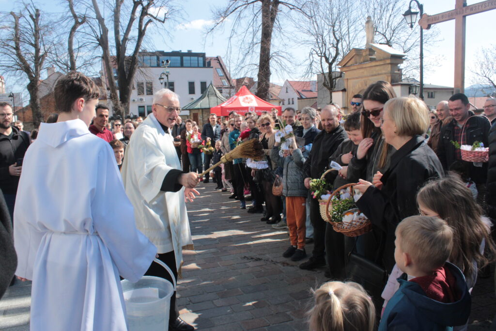 W Wielką Sobotę od rana do Sanktuarium Matki Bożej Pani Myślenickiej przybywały tłumy myśleniczan z koszyczkami, aby poświęcić pokarmy na wielkanocny stół. Poświęcił je proboszcz parafii NNMP ks. Zdzisław Balon życząc przy tym wszystkim przybyłym wielu łask Bożych na świąteczny czas. Przy okazji stało się zadość także innej, choć krótszej niż samo święcenie pokarmów, tradycji, a mianowicie odbyła się akcja „Podziel się święconym”, w ramach której każdy kto chciał mógł włożyć do koszy wolontariuszy Parafialnego Zespołu Caritas Betania coś ze swojego koszyczka, a wszystkie te dary trafią jeszcze tego samego dnia do potrzebujących, aby mogli z nich przygotować śniadanie wielkanocne.