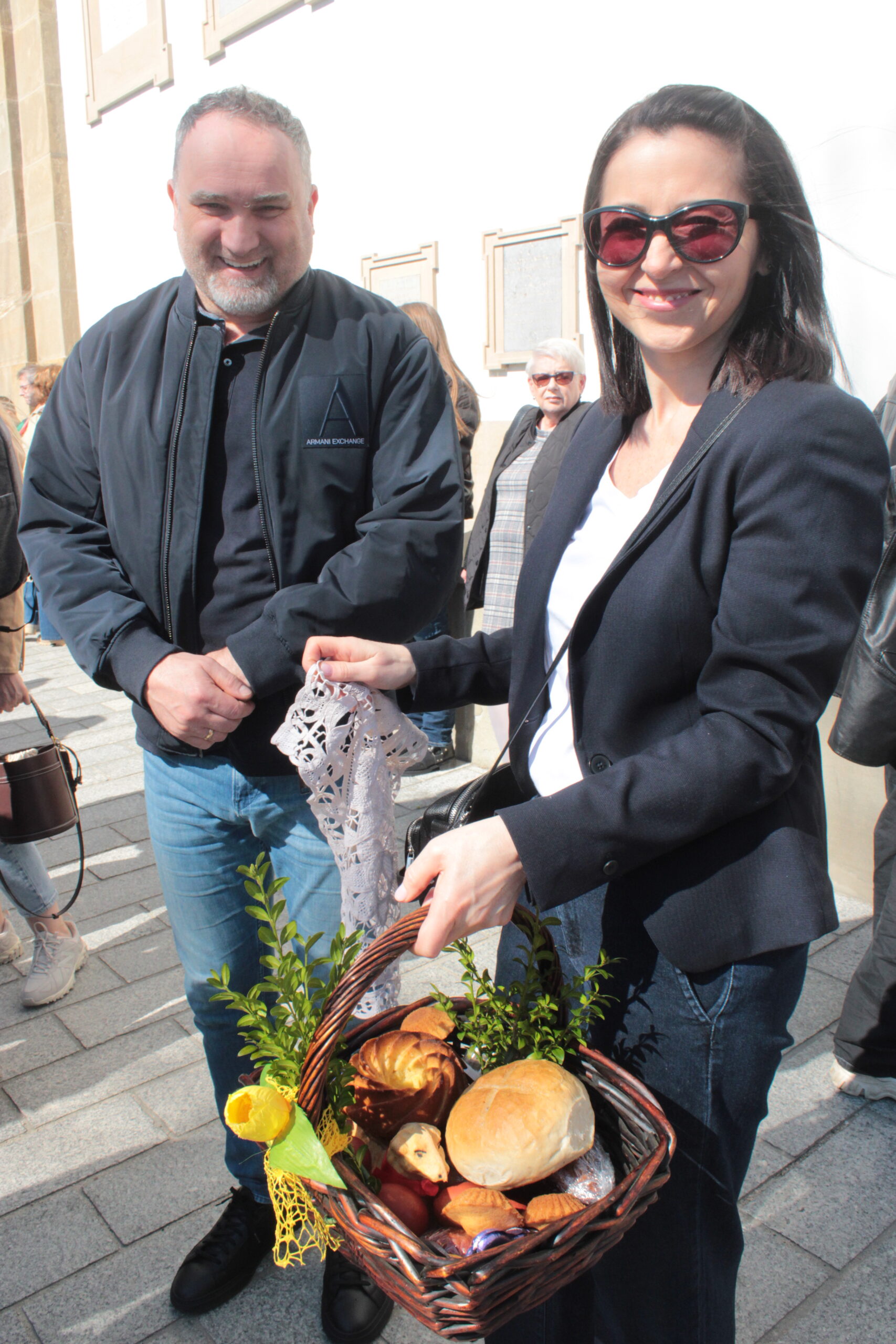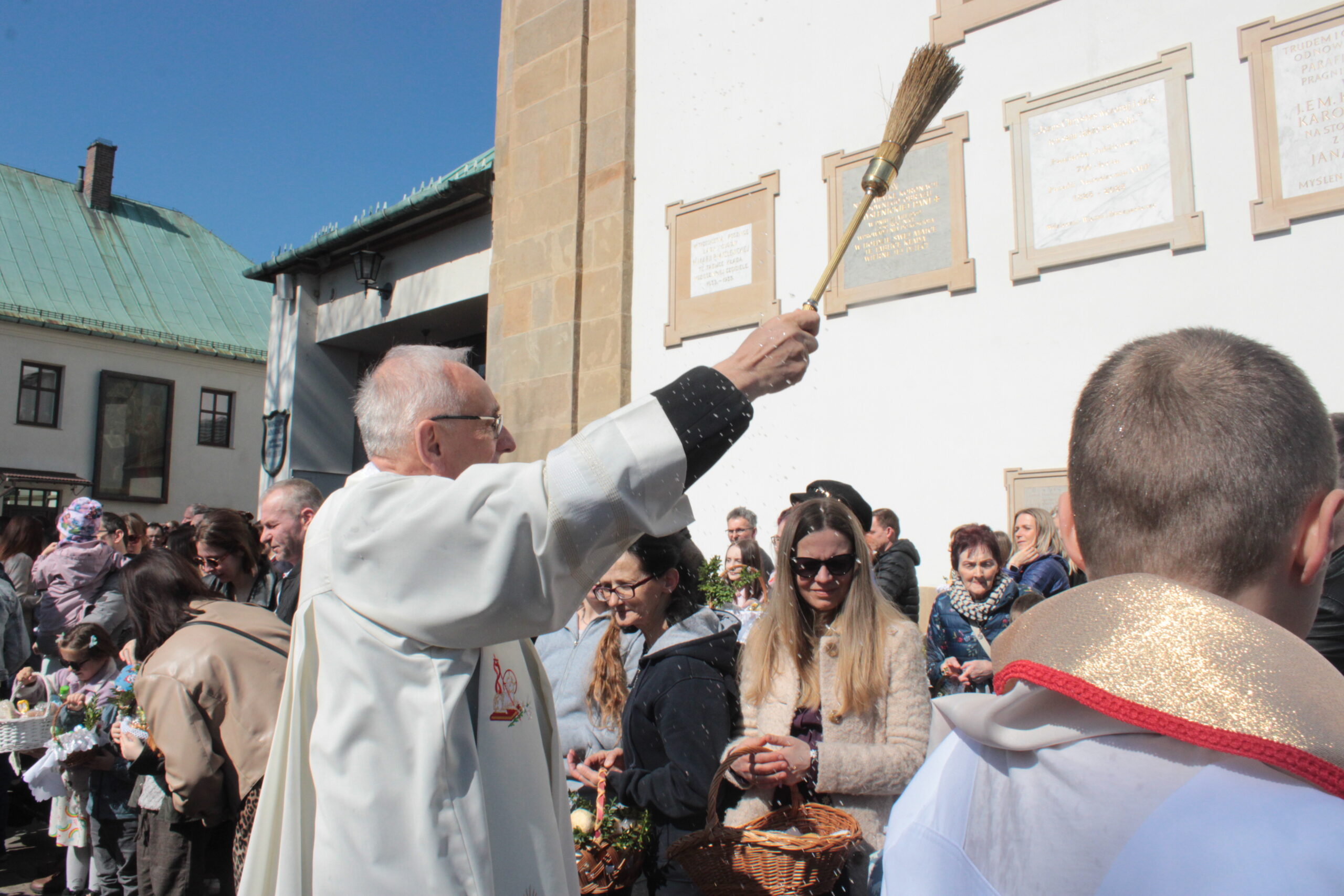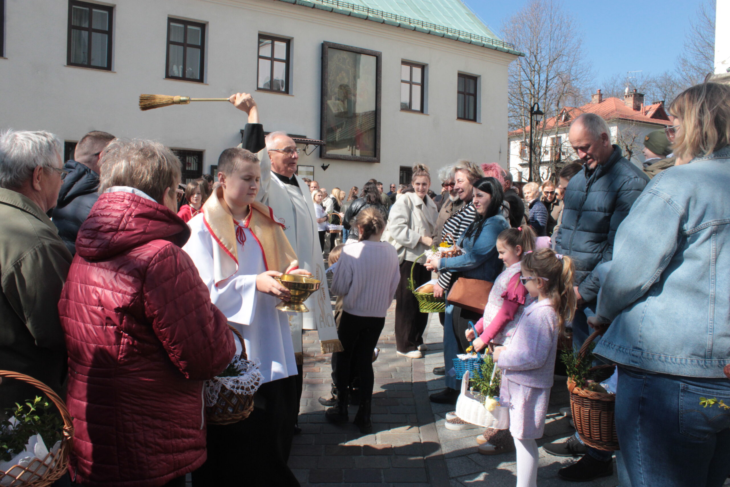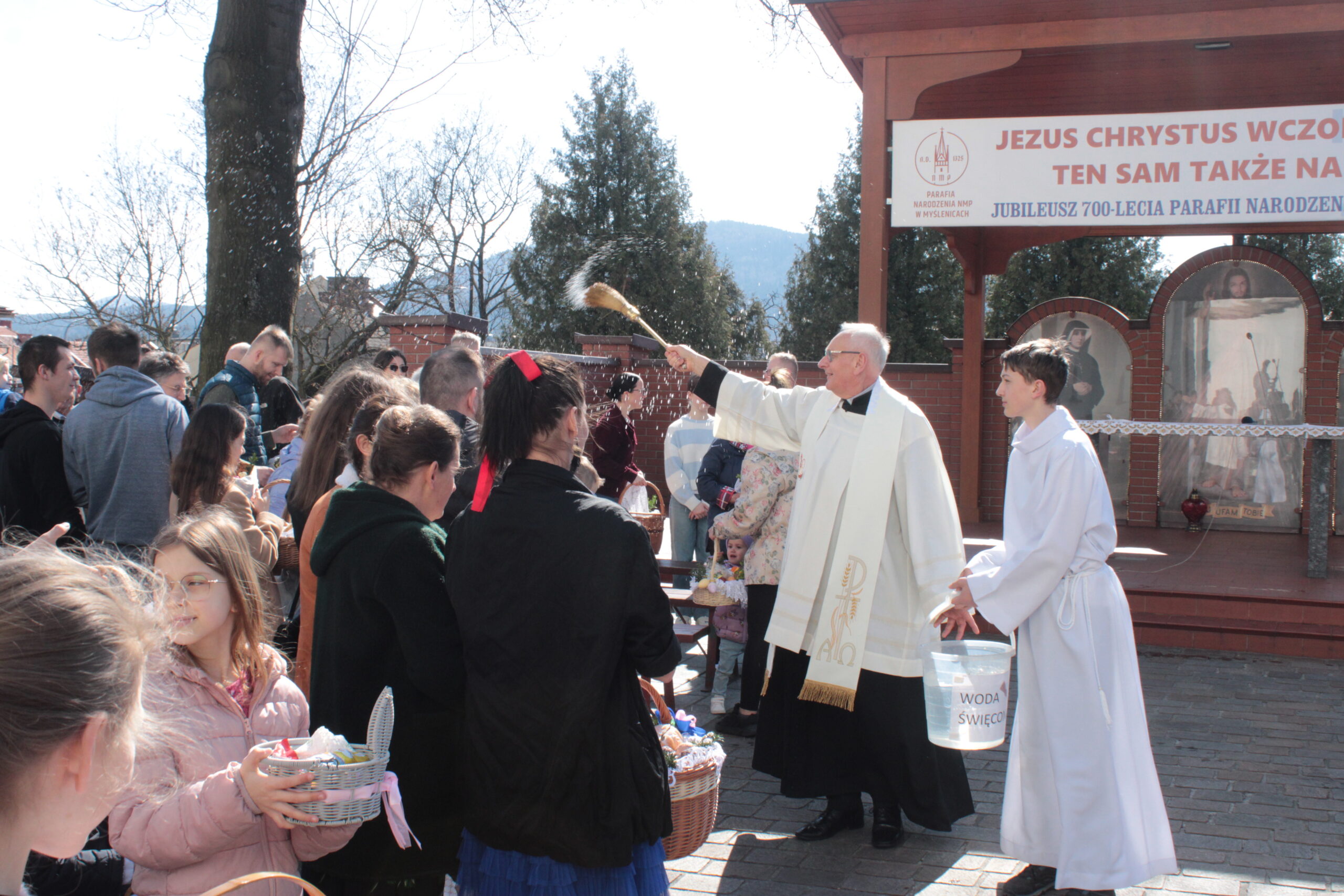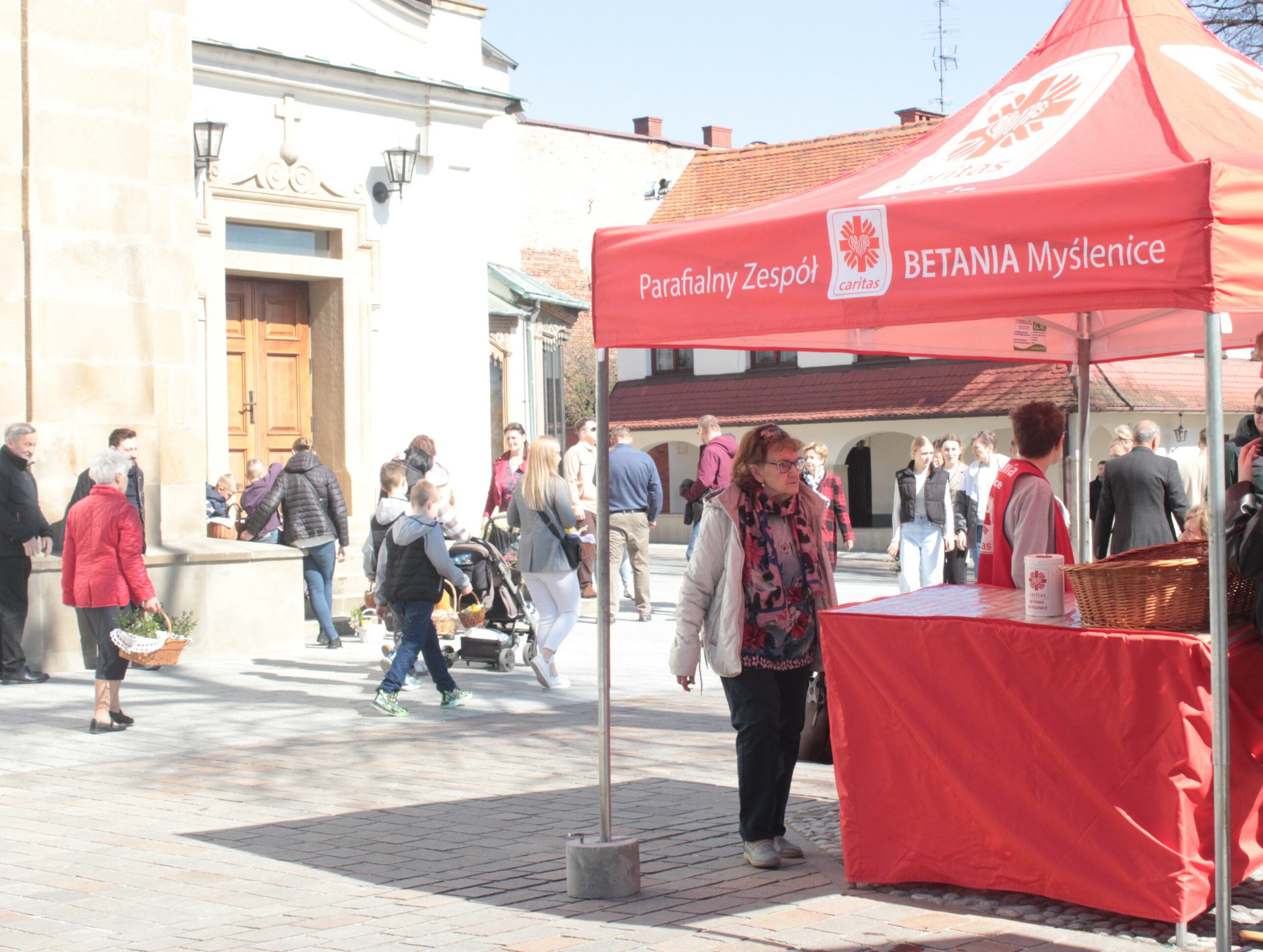 W Wielką Sobotę od rana do Sanktuarium Matki Bożej Pani Myślenickiej przybywały tłumy myśleniczan z koszyczkami, aby poświęcić pokarmy na wielkanocny stół. Poświęcił je proboszcz parafii NNMP ks. Zdzisław Balon życząc przy tym wszystkim przybyłym wielu łask Bożych na świąteczny czas. Przy okazji stało się zadość także innej, choć krótszej niż samo święcenie pokarmów, tradycji, a mianowicie odbyła się akcja „Podziel się święconym”, w ramach której każdy kto chciał mógł włożyć do koszy wolontariuszy Parafialnego Zespołu Caritas Betania coś ze swojego koszyczka, a wszystkie te dary trafią jeszcze tego samego dnia do potrzebujących, aby mogli z nich przygotować śniadanie wielkanocne.