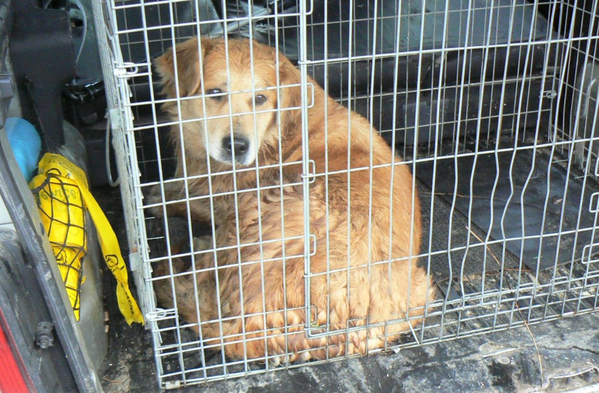 Pies ranny w wypadku samochodowym w Łękach obok Świetlicy. Pilnie poszukujemy właściciela psa. Pies już po wizycie u weterynarza, oczekuje na właściciela na terenie UMiG Myślenice.