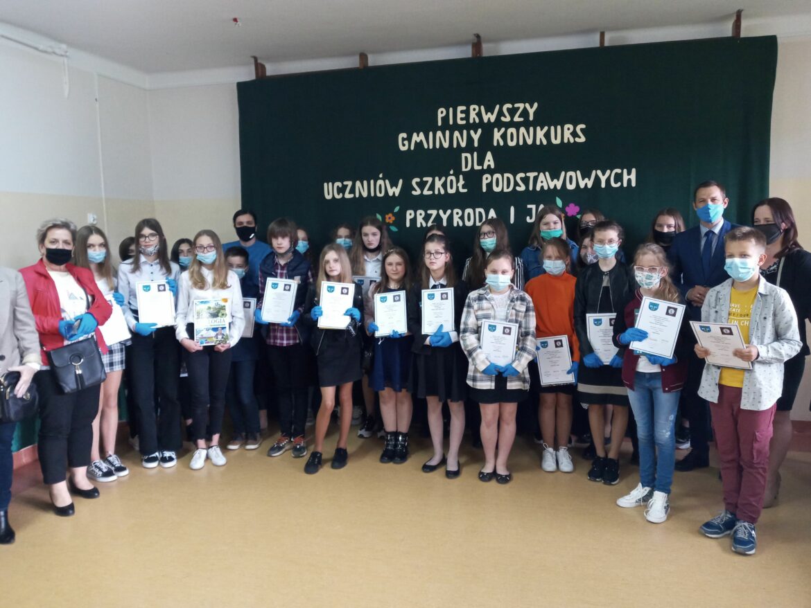 Na zdjęciu nagrodzeni uczniowie pierwszego konkursu „Przyroda i ja” wraz z opiekunami.