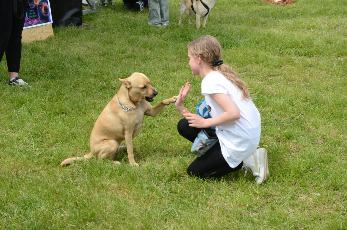 Oczywiście na tym nie koniec, w trakcie imprezy na kiermaszu można było nabyć smakołyki, książki, kwiaty, rękodzieło i inne rzeczy, z których dochód zasilił kasę stowarzyszenia. Dzieci mogły wziąć udział w konkursie plastycznym, a dorośli bezpłatnie zaczipować pupila, oraz posłuchać wykładu „Bezpieczny człowiek, bezpieczny pies” – poprowadzonego przez Kingę Śliwę oraz Agnieszkę Banowską-Sitek -HAU HAU Pozytywne Szkolenie Psów. Jeżeli właściciel i pupil mieli ochotę na trochę sportu czekał tor przeszkód oraz zabawa, wyścig dla dwojga -Ty i Twój pies.