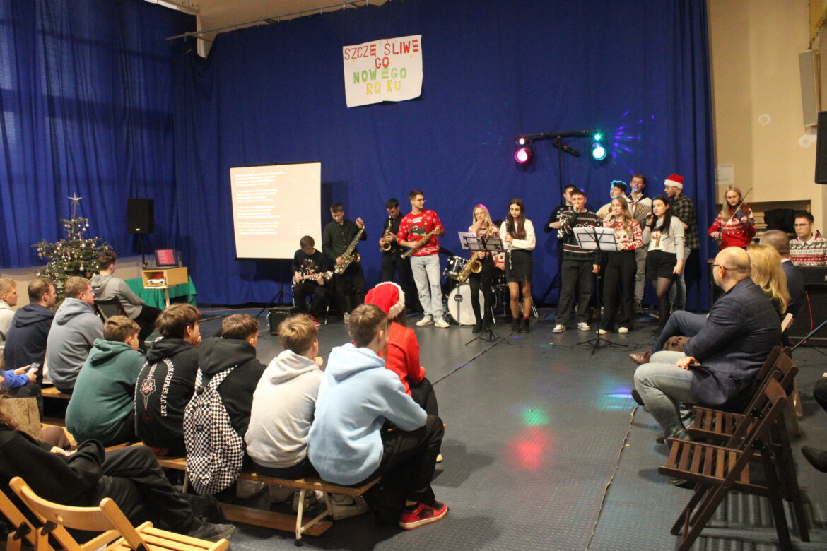 W czwartek 21 grudnia w Zespole Szkół Techniczno-Ekonomicznych im. Mikołaja Reja w Myślenicach odbył się koncert świąteczny połączony z akcją charytatywną. Zagrał zespół Rej Band, a na widowni zasiedli uczniowie tej największej w powiecie myślenickim szkoły ponadpodstawowej. Z inicjatywy zespołu, który blisko rok temu reaktywował się po pandemicznej przerwie, wydarzenie miało wymiar pomocowy, bo po koncercie każdy kto chciał mógł wesprzeć zbiórkę na rzecz 18-letniej Wioletty Gil, u której zdiagnozowano glejaka.