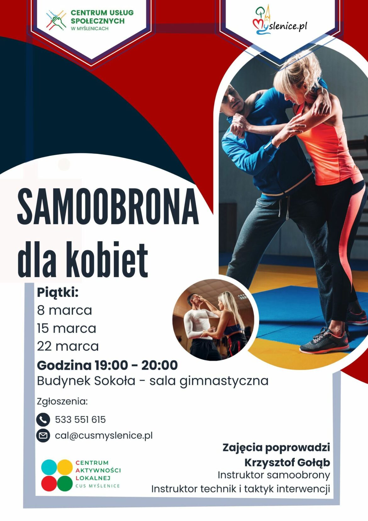 Zajęcia poprowadzi Krzysztof Gołąb, instruktor samoobrony, instruktor technik i taktyk interwencji.