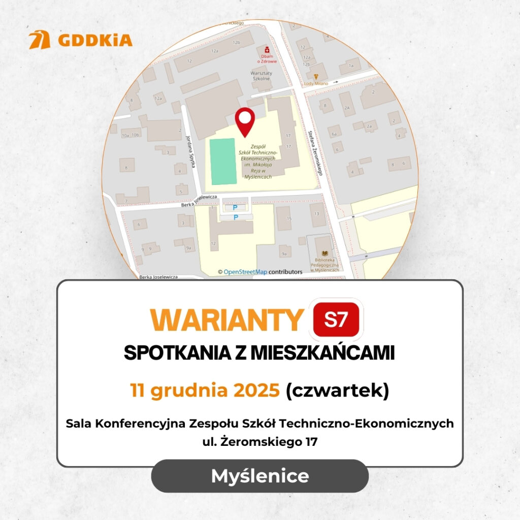 Natomiast w czwartek 11 grudnia również w Myślenicach odbędą się konsultacje organizowane przez Generalną Dyrekcją Dróg Krajowych i Autostrad. GDDKIA zmieniła miejsce tego spotkania a nowa lokalizacja to sala konferencyjna Zespołu Szkół Techniczno-Ekonomicznych przy ul. Żeromskiego 17.