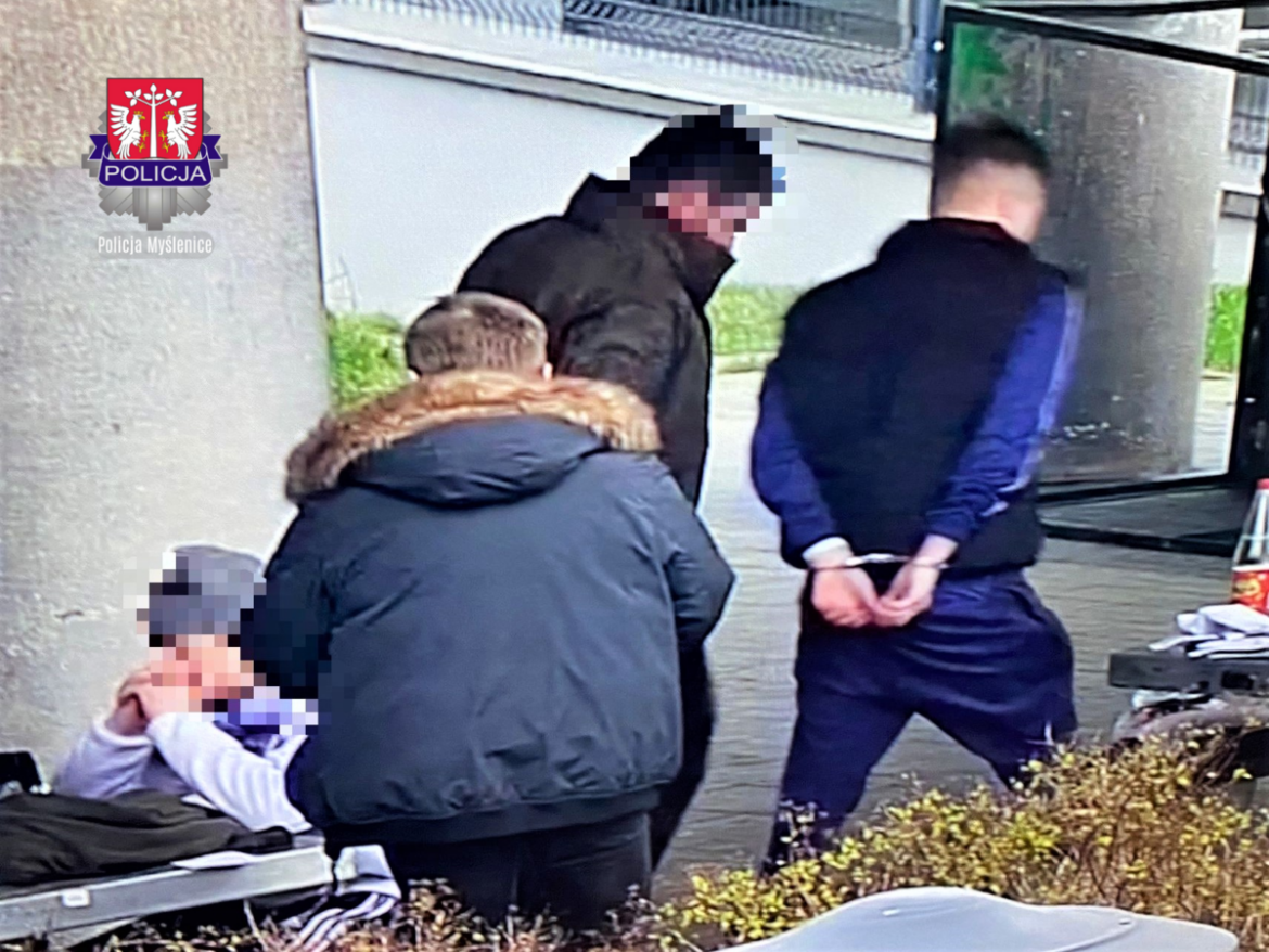 W czwartek (14.03.br.) pracownica Straży Miejskiej obsługująca monitoring powiadomiła dyżurnego, że przy Myślenickim Ośrodku Kultury i Sportu siedzą młodzi mężczyźni, których zachowanie wskazuje, że mogą zajmować się handlem narkotykami. Już po kilku minutach na miejscu pojawili się policjanci. Gdy sprawdzili zawartość kieszeni i plecaków siedzących tam mężczyzn okazało się, że jeden z nich miał przy sobie dużą ilość środków odurzających. 19-latek, który posiadał przy sobie 114 gramów marihuany i 80 gramów haszyszu został zatrzymany.
