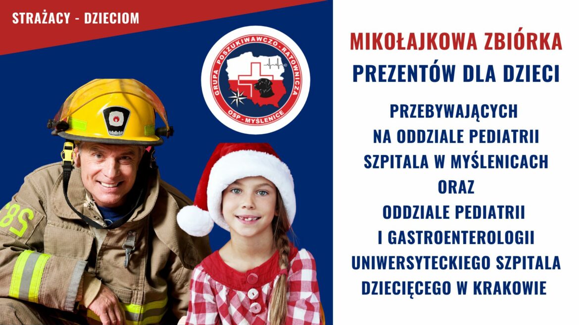 Ochotnicza Straż Pożarna GPR Myślenic zaprasza do udziału w mikołajkowej akcji na rzecz dzieci przebywających na oddziałach szpitalnych w Myślenicach i Prokocimiu. Jak piszą organizatorzy — „Razem możemy wesprzeć Mikołaja i pomóc przywrócić uśmiech na dziecięcych buziach”.