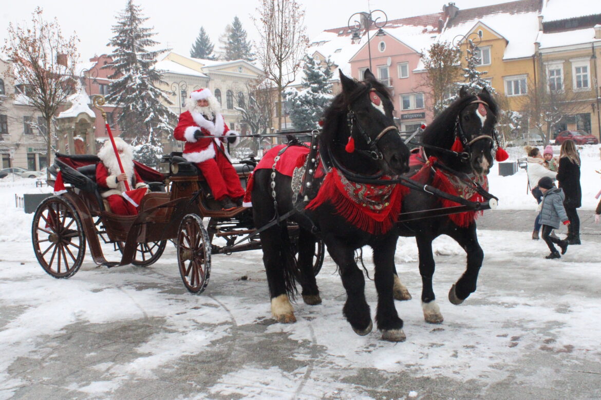 Kto w godzinach popołudniowych był w Myślenicach mógł spotkać na swojej drodze Świętego Mikołaja. Na spotkanie z mieszkańcami Święty wyruszył z serca miasta, czyli Rynku na którym stoi choinka czekająca na wieczór, kiedy to – zresztą w jego obecności – rozbłysną na niej setki lampek. W przejażdżce po mieście Mikołajowi towarzyszyli zastępca burmistrza Myślenic Mateusz Suder i Barbara Bylica, naczelnik Wydziału Promocji, Współpracy i Sportu UMiG Myślenice. Na wozie była też pokaźnych rozmiarów torba pełna słodyczy dla napotkanych osób.