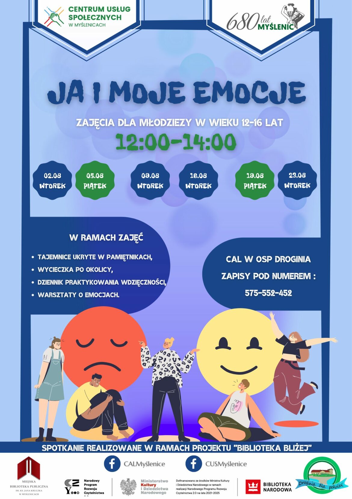 Wtorek (02.08.) w CAL Droginia ruszają zajęcia dla młodzieży: „Ja i moje emocje” realizowane w ramach programu „Biblioteka bliżej” przez Droginia dla pokoleń.
