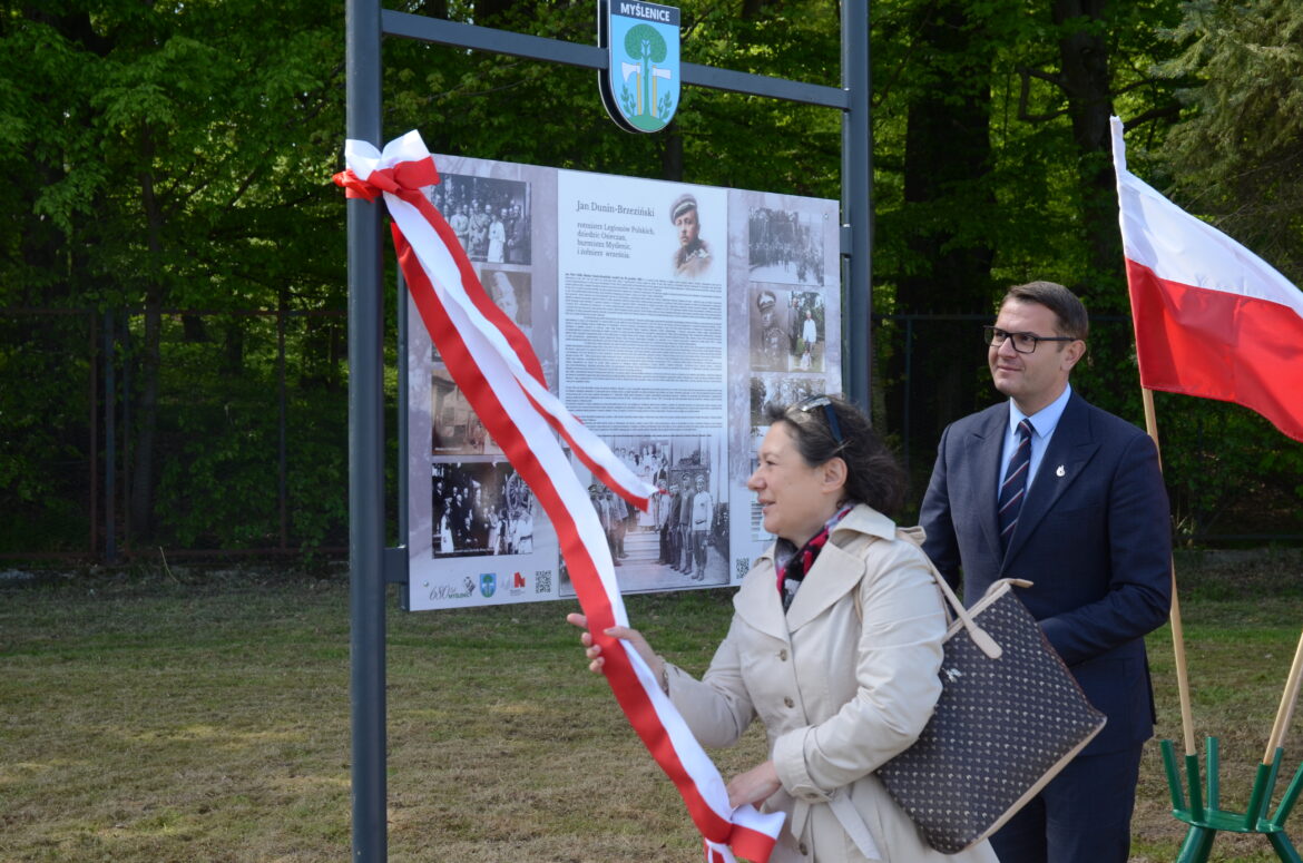 Tablicę poświęconą lokalnemu bohaterowi odsłonili Beata Brzezińska – Kolarz, wnuczka rotmistrza, oraz burmistrz Jarosław Szlachetka. Ponadto w uroczystości wzięli udział pedagodzy, dyrektorzy oraz młodzież ze szkół Podstawowych w Drogini i Osieczanach oraz sołtys Osieczan Marcin Dudzik.
