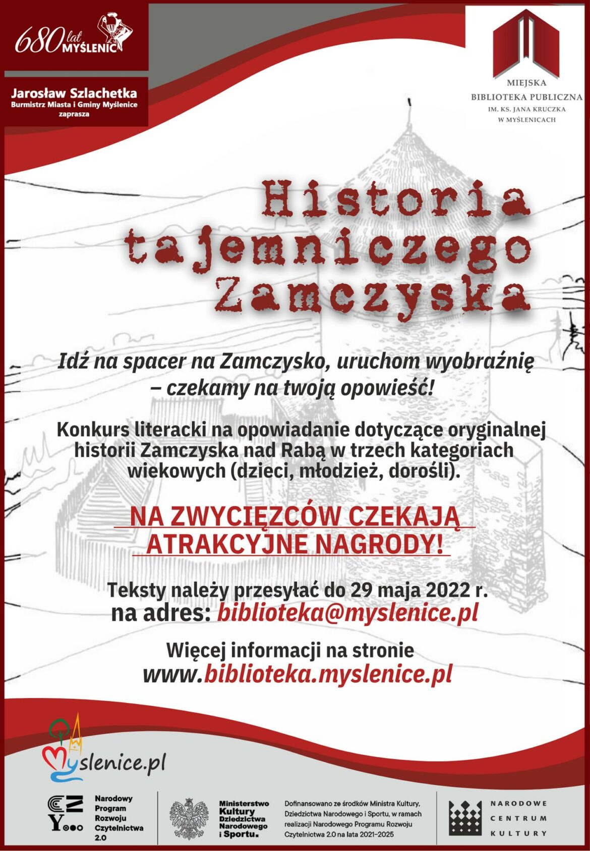Z okazji 680-lecia nadania praw miejskich Miejska Biblioteka Publiczna im. ks. Jana Kruczka w Myślenicach ogłasza konkurs literacki. Opowiadanie ma dotyczyć oryginalnej historii Zamczyska nad Rabą. Będzie ona w trzech kategoriach wiekowych (dzieci, młodzież, dorośli).