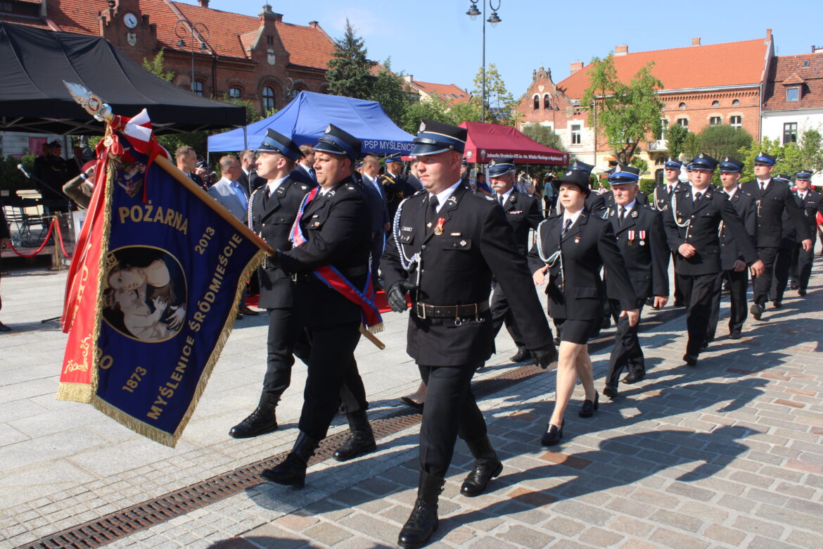 Słuchali go m.in. przybyli na to święto do Myślenic posłowie: Edward Siarka, który jest także prezesem zarządu oddziału wojewódzkiego ZOSP RP w Krakowie i Władysław Kurowski; wicemarszałek województwa małopolskiego a zarazem wiceprezes zarządu wojewódzkiego Związku OSP RP w Krakowie Łukasz Smółka, radny województwa małopolskiego i podsekretarz stanu w Ministerstwie Klimatu i Środowiska Miłosz Motyka, starosta myślenicki Józef Tomal, wicestarosta Rafała Kudas, burmistrz miasta i gminy Myślenice Jarosław Szlachetka, zastępca burmistrza Mateusz Suder, przewodniczący Rady Miejskiej w Myślenicach Mirosław Fita, komendant wojewódzki PSP w Krakowie bryg. Przemysław Przęczek, małopolski kapelan strażaków bryg. w stanie spoczynku ks. Władysław Kulig, komendant powiatowy PSP w Myślenicach st. bryg. Sławomir Kaganek, nadkom. Tomasz Żądło z KPP w Myślenicach, ks. dziekan Zdzisław Balon, proboszcz parafii Narodzenia NMP w Myślenicach, prezes zarządu oddziału powiatowego ZOSP RP w Myślenicach druh Jan Podmokły, prezes zarządu oddziału miejsko-gminnego ZOSP RP w Myślenicach druh Waldemar Pachoń oraz komendant tegoż zarządu druh Roman Ajchler. Licznie dopisały też poczty sztandarowe jednostek OSP z terenu gminy i powiatu.