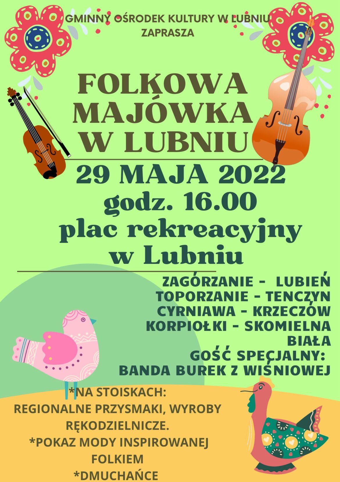 Folkowa Majówka w Lubniu Redakcja 12 maja 2022 Serdecznie zapraszamy 29 maja 2022r. na 1 Folkową Majówkę w Lubniu 12 maja 2022 0 FacebookEmail