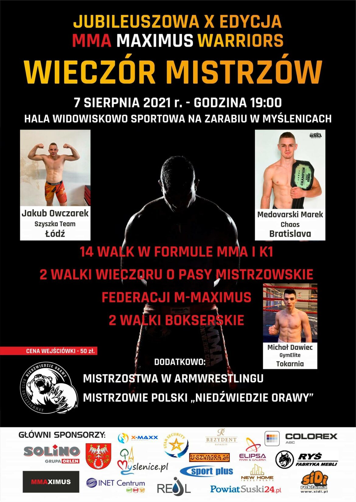 Klub MMA Maximus zaprasza na jubileuszową X edycję Gali MMA Maximus Warriors, która odbędzie się 7 sierpnia od 19:00 w Myślenicach. Oktagon, będący areną mieszanych sztukach walk, będzie zlokalizowany w hali widowiskowo-sportowej na Zarabiu.