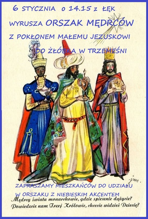 Sołectwo Łęki i Stowarzyszenie „My Łęczanie” zaprasza mieszkańców Łęk do wzięcia udziału w ORSZAKU MĘDRCÓW, który odbędzie się w sobotę 6 stycznia a przejdzie z Łęk do Trzemeśni.