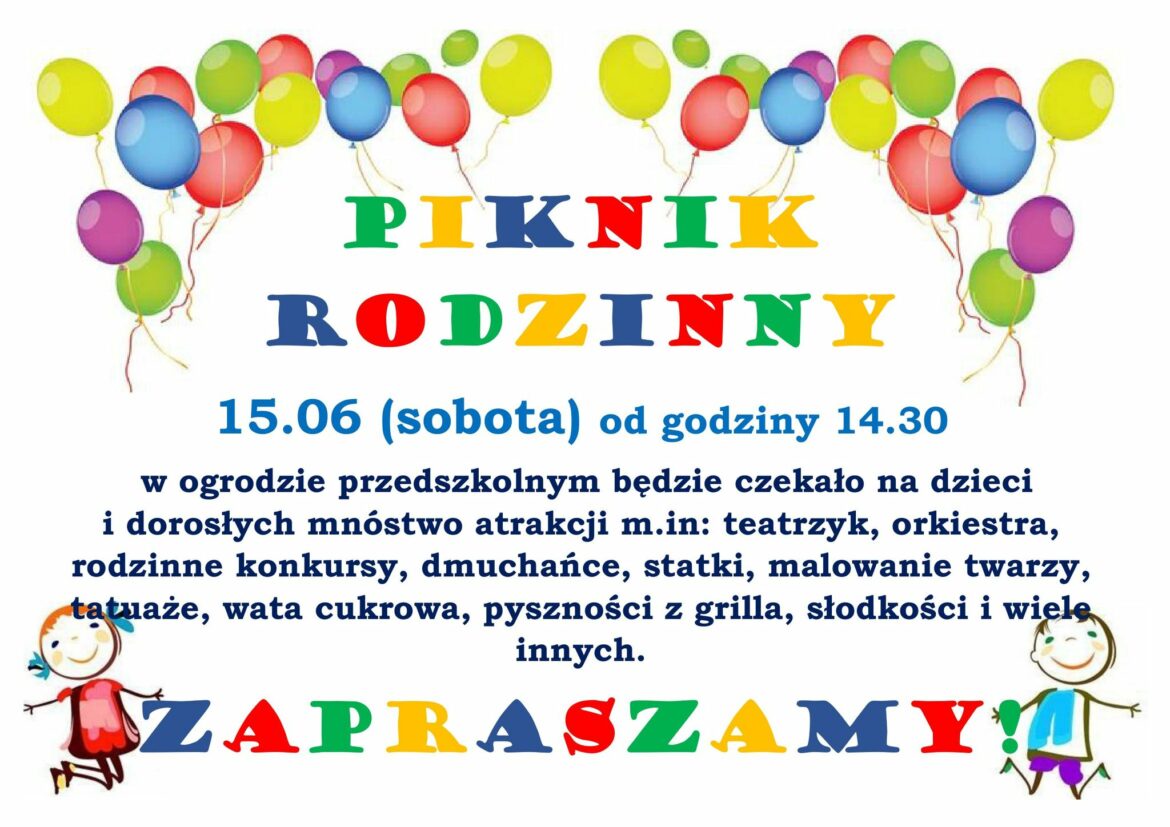 W sobotę 15 czerwca przy Przedszkolu Samorządowym nr 6 w Myślenicach odbędzie się Piknik Rodzinny.