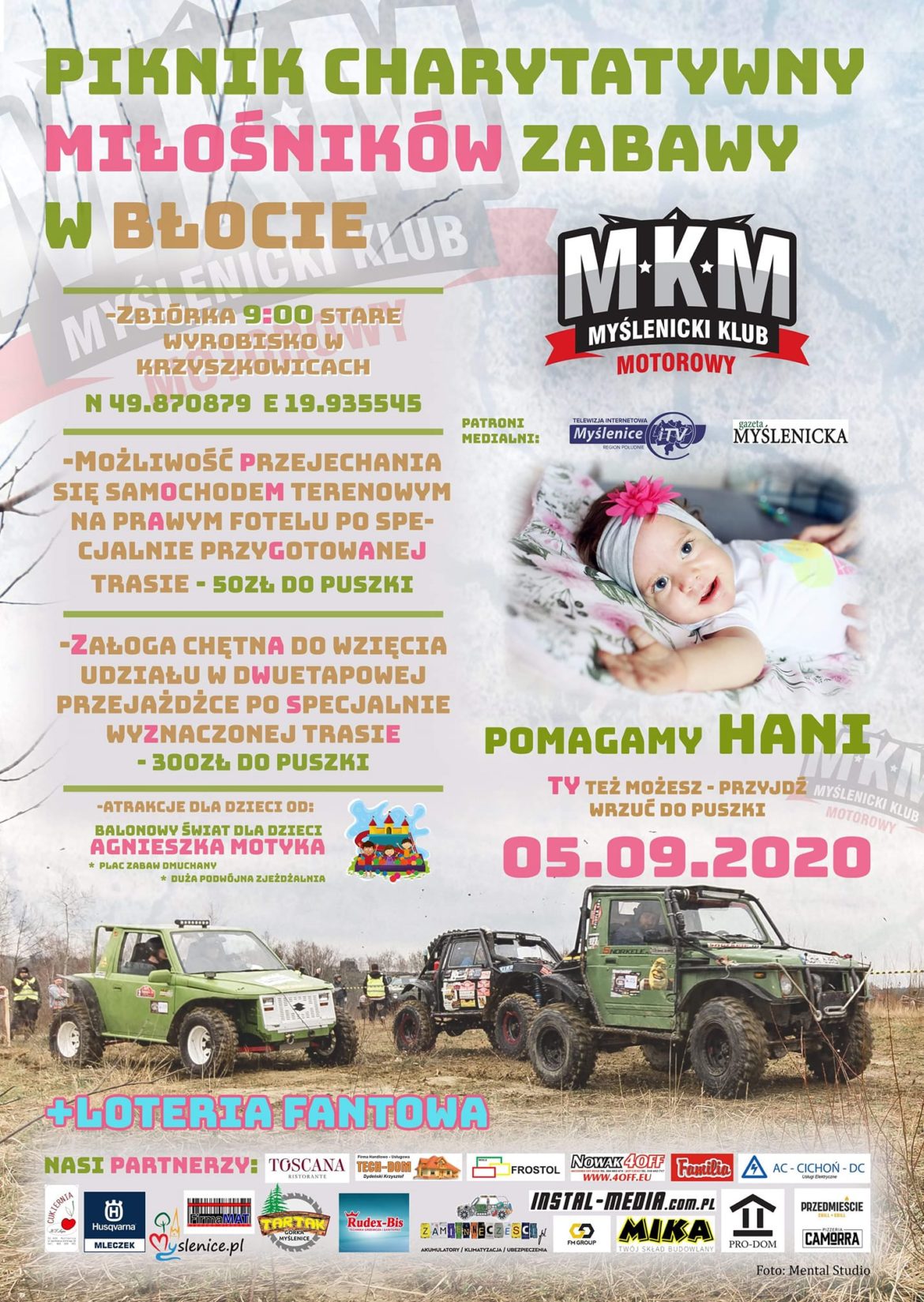 Zapraszamy na „Piknik charytatywny miłośników zabaw w błocie”, który odbędzie się w starym wyrobisku w Krzyszkowicach – Szczegóły na plakacie.
