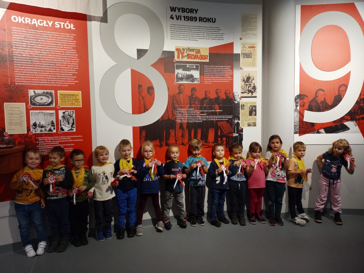 Przygotowania do obchodów Narodowego Święta Niepodległości w Przedszkolu Samorządowym nr 4 w Myślenicach rozpoczęło kilka tygodni wcześniej. Dzieci poznały historię naszego miasta oraz Polski, piękno polskich tradycji, obyczajów i krajobrazów. Przedszkolaki uczestniczyły w warsztatach w Muzeum Niepodległości w Myślenicach, gdzie wykonały kokardy w barwach biało-czerwonych oraz brały udział w lekcjach muzealnych pt. „Polak mały” – O polskiej symbolice narodowościowej.