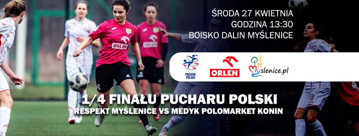 W środę 27 kwietnia na stadionie KS Dalin, o godzinie 13.30, Respekt Myślenice podejmie Medyk Polomarket Konin w ramach 1/4 Finału Pucharu Polski. Zapraszamy na mecz.