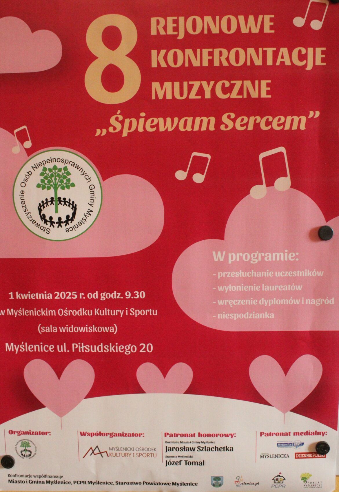 We wtorek 1 kwietnia w Myślenickim Ośrodku Kultury i Sportu odbędą się 8. Rejonowe Konfrontacje Muzyczne „Śpiewam sercem”. Jest to wydarzenie cykliczne organizowane przez Stowarzyszenie Osób Niepełnosprawnych Gminy Myślenice.