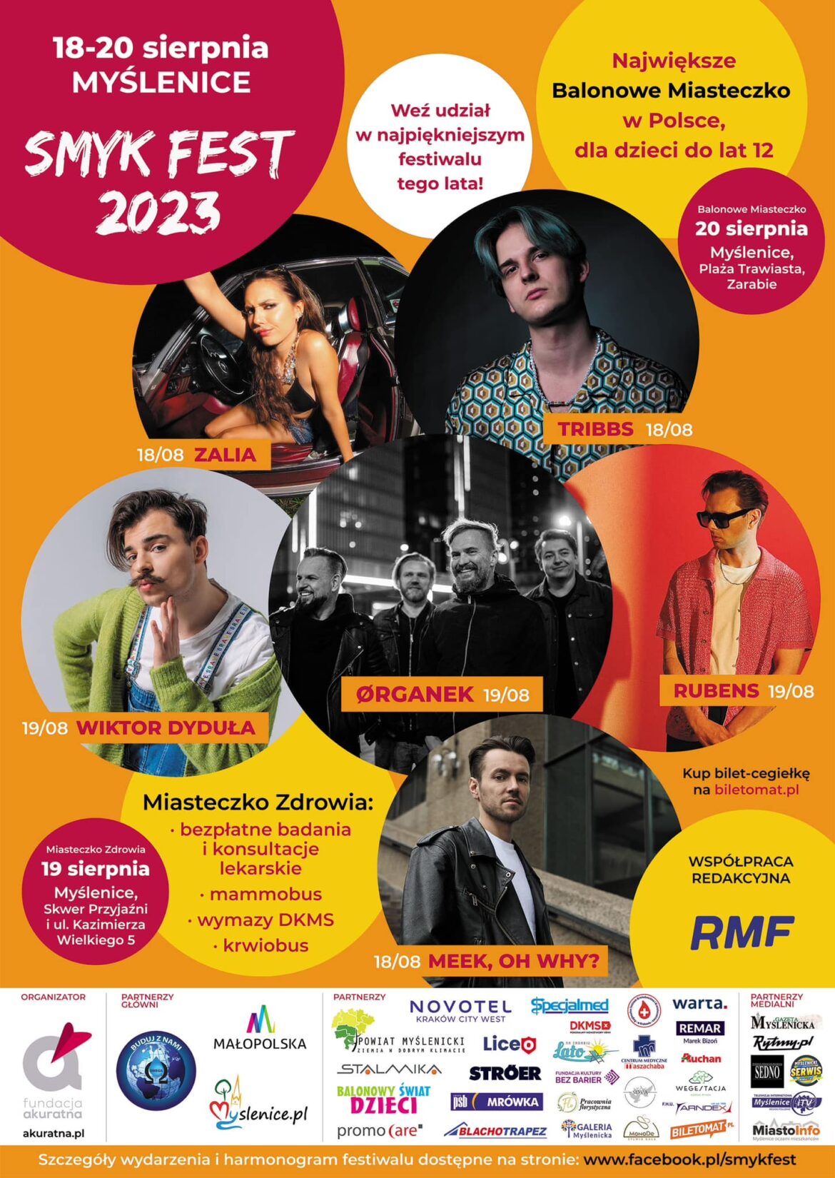 Znamy już wszystkich artystów, którzy zagrają na festiwalowej scenie. Poniżej pełny harmonogram wydarzenia – bilety można wciąż nabyć pod adresem: https://www.biletomat.pl/bilety/smyk-fest-2023-myslenice