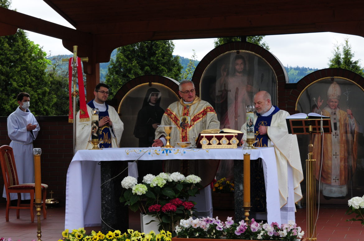 Msza, odprawiana przy ołtarzu polowym, oprócz władz gminnych i powiatowych, zgromadziła wiernych pragnących oddać cześć Matce Bożej w Jej święto oraz pomodlić się wspólnie o zdrowie dla nasz wszystkich i o ustanie epidemii. Po Mszy Świętej delegacja władz wraz z Księdzem Proboszczem udała się do kaplicy Matki Bożej, gdzie złożono kwiaty i wspólnie odmówiono modlitwę ofiarowując Pani Myślenickiej prośby o zdrowie i pomyślność Ojczyzny.