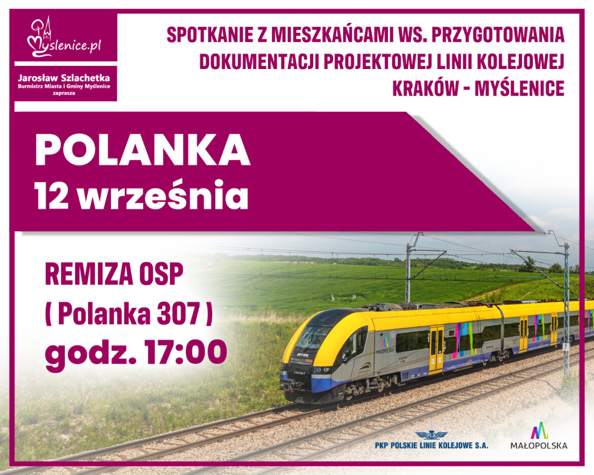 W czwartek 12 września o godz. 17 w remizie OSP w Polance odbędzie się spotkanie z mieszkańcami dotyczące przygotowania dokumentacji projektowej linii kolejowej Kraków – Myślenice.