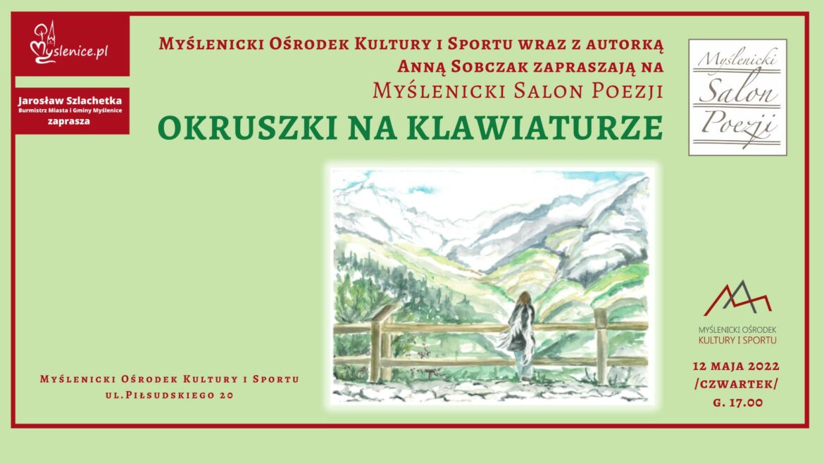 Myślenicki Ośrodek Kultury i Sportu wraz z autorką serdecznie zapraszają na spotkanie z poezją w czwartek, 12 maja o godzinie 17.00.