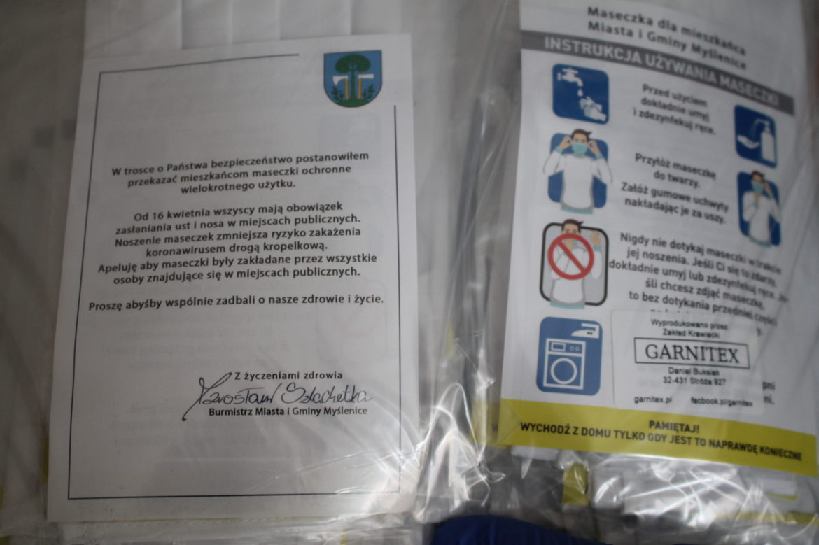 Przypomnijmy , Gmina Myślenice zakupiła dla mieszkańców dwadzieścia tysięcy sztuk maseczek ochronnych służących profilaktyce mającej na celu zatrzymanie rozpowszechniania się epidemii koronawirusa. Maseczki zostały wykonane przez cztery lokalne firmy Dama Kier, Sport Plus, As-Garnitex oraz Wood – ZOO. Dziś rozpoczęła się akcja dostarczania maseczek mieszkańcom.