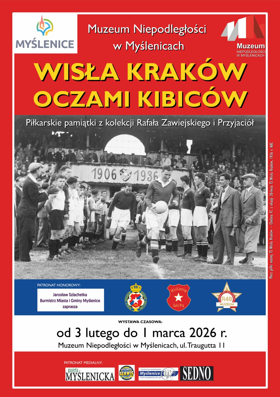 Od 3 lutego w Muzeum Niepodległości w Myślenicach będzie można zwiedzać nową wystawę czasową. Będzie to wystawa „Wisła oczami kibiców” złożona z piłkarskich pamiątek pochodzących z kolekcji Rafała Zawiejskiego a nawiązująca do obchodzonego w tym roku jubileuszu 120-lecia Wisły Kraków.
