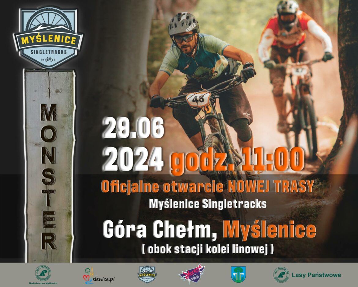 Od soboty 29 czerwca Myślenice będą oferować nową górską trasę rowerową. „Monster”, bo tak się ona nazywa, jest trasą typu enduro hard i ma ok. 1100 metrów. Jest usytuowana na Chełmie i jest częścią kompleksu Myślenice Singletracks, razem z oddanymi do użytku jesienią 2022 roku trasami „Rodzinny Flow” i „Snajper” oraz „Spacerówką” na sąsiedniej Uklejnie. Oficjalne otwarcie nowej trasy zaplanowane jest na godz. 11 (przy górnej stacji kolejki 4-osobowej na Chełmie).