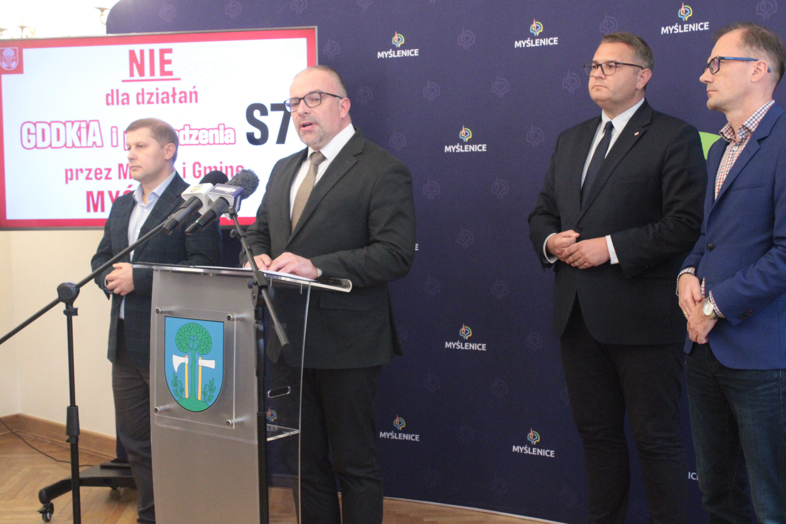 „Nie” dla S7 przez gminę Myślenice – takie jest stanowisko gminy Myślenice wobec sześciu wariantów przebiegu S7 przedstawionych wczoraj przez Generalną Dyrekcję Dróg Krajowych i Autostrad w Krakowie. Przedstawił je we wtorek 4 listopada na konferencji prasowej burmistrz Jarosław Szlachetka wraz ze swoimi współpracownikami argumentując dlaczego warianty te są nie do zaakceptowania oraz zadając pytanie dlaczego wśród przedstawionych zabrakło wariantu omijającego gminę Myślenice od wschodu o który postulowała m.in. Rada Miejska w Myślenicach.