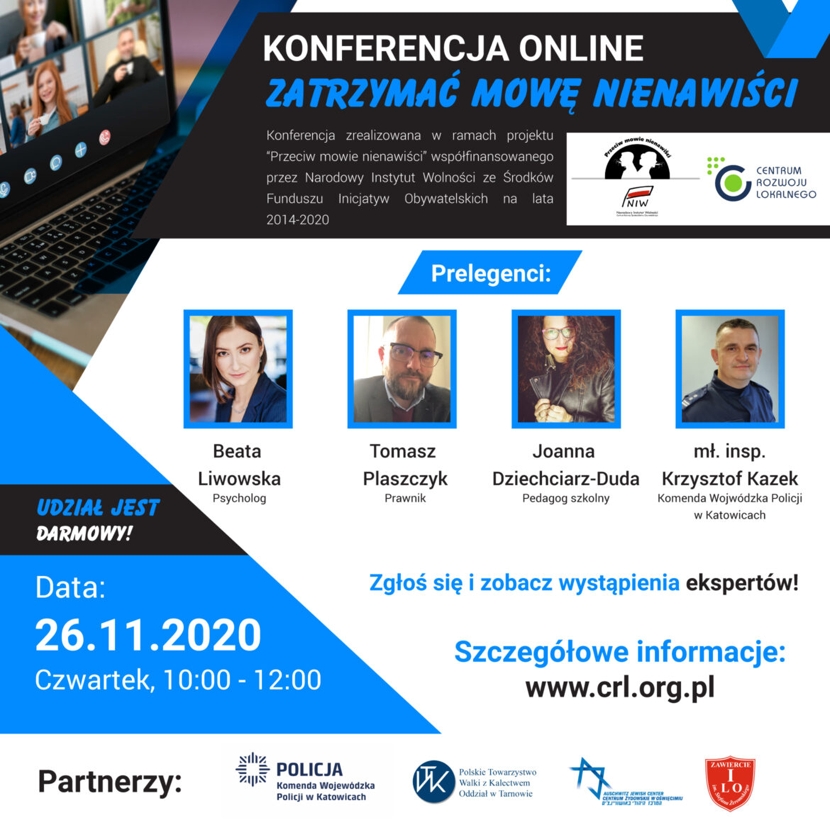 Rejestracja do udziału w konferencji: https://bit.ly/zatrzymać_mowe_nienawisci